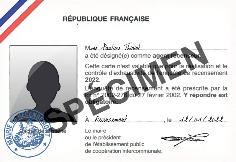 Ce document doit comprendre à la fois la mention « agent recenseur», en haut à gauche les couleurs bleu blanc rouge, la signature du Maire de Reims et sa photo.