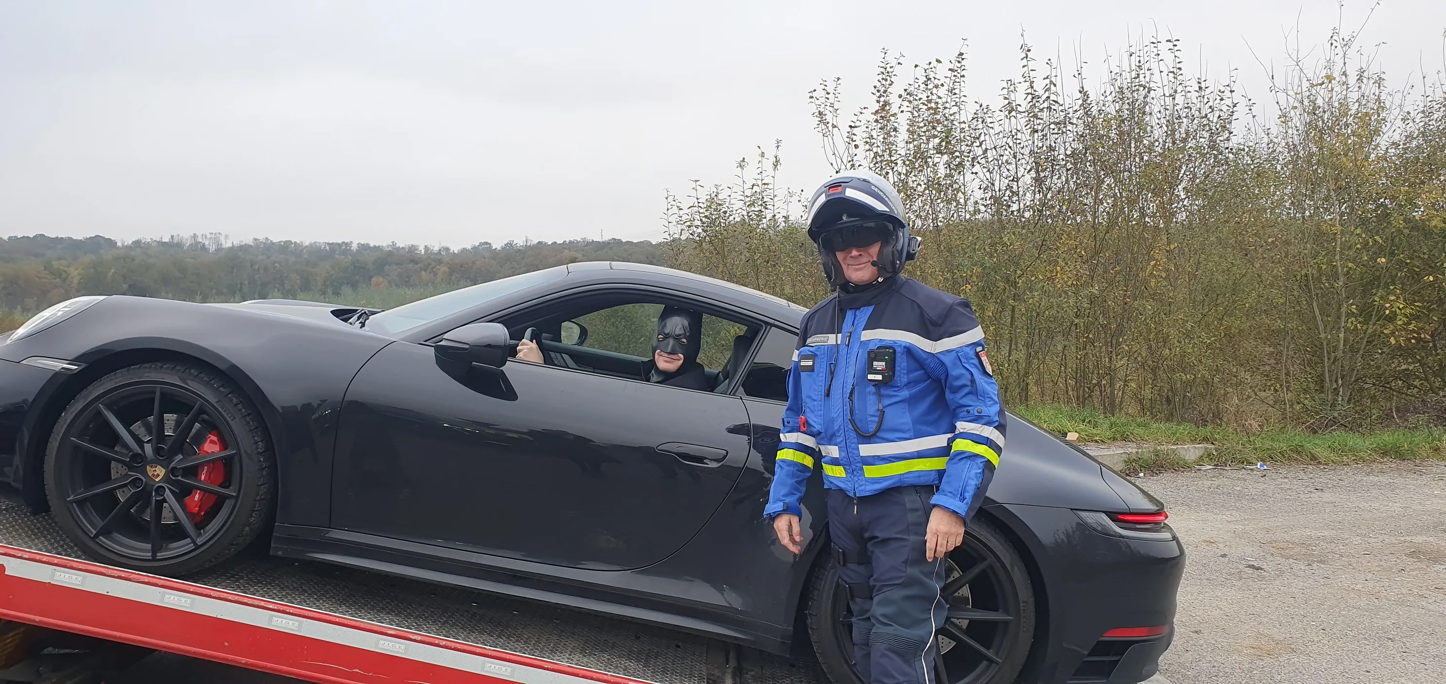 Et là grosse surprise pour les motards quand ils ont découvert qu’ils venaient d’interpeller… Batman et Catwoman.