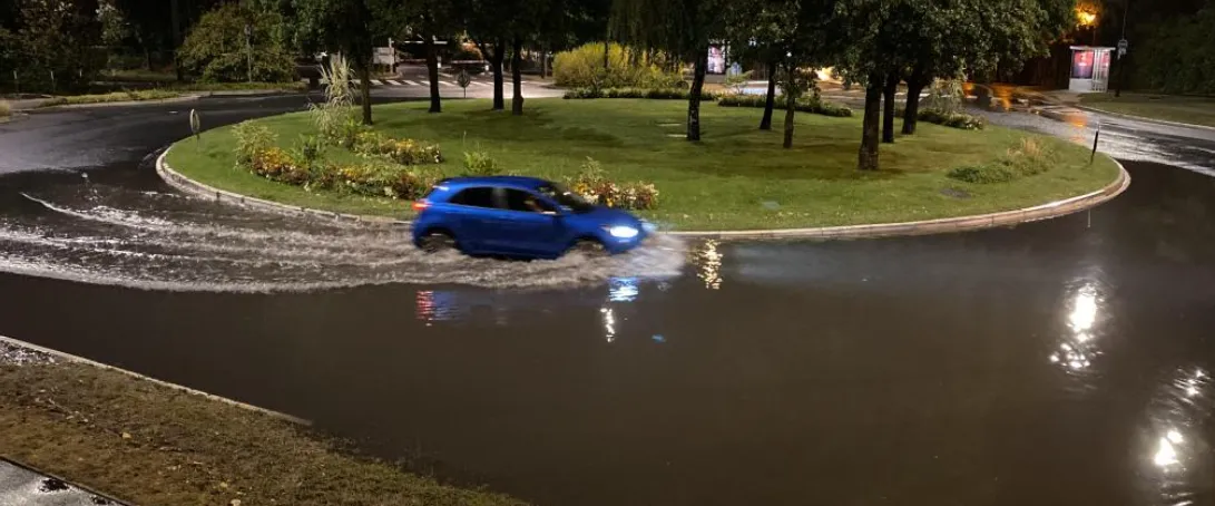 Les automobilistes ont parfois dû faire face à des inondations sur la chaussée, comme sur ce rond-point, avenue du Maréchal Juin.