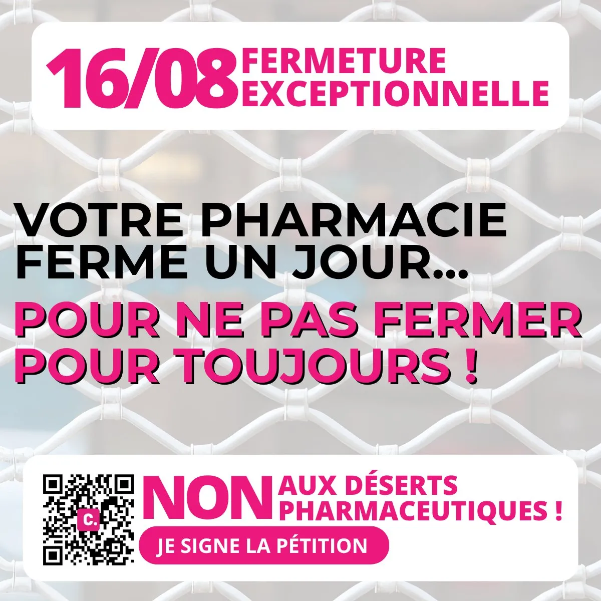 🚨 Le 16 août, des milliers de pharmacies fermeront leurs portes.