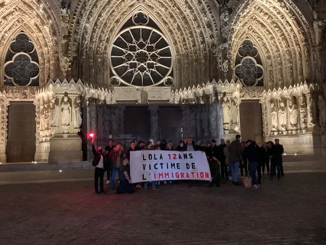 Alors que les parents de la jeune victime refusent toute récupération politique, une cinquantaine de personnes se sont réunies ce jeudi soir devant la Cathédrale de Reims, pour un hommage à « Lola, victime de l’immigration », comme indiquée sur la banderole en tête du cortège.
