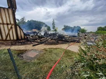 Les secours ont déployé plusieurs lances pour tenter d'empêcher la propagation des flammes aux habitations et champs voisins.