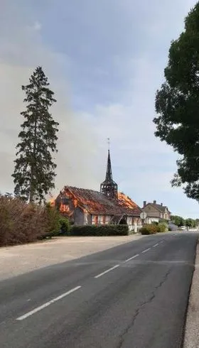 L'Eglise de Drosnay, classée monument historique, est en feu. D'importants moyens humains et matériels sont mobilisés sur place.