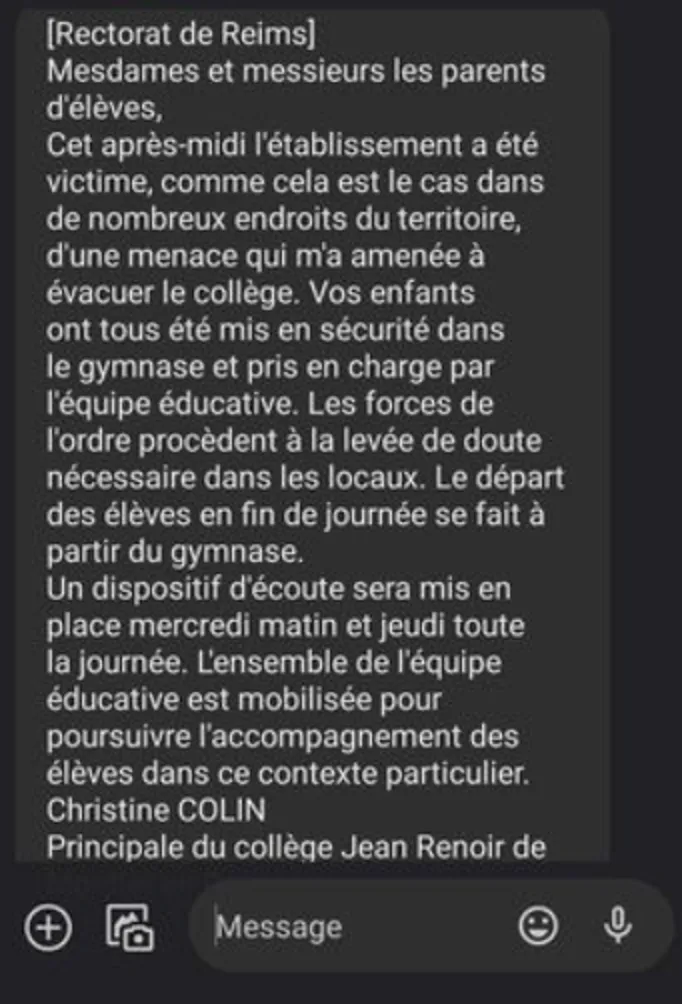 Un nouvel établissement scolaire de Champagne-Ardenne a été la cible de menaces, ce mardi après-midi.