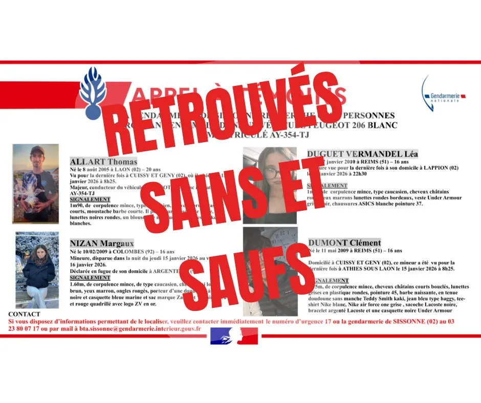 Les 4 jeunes, originaires de l'Aisne pour l'essentiel, qui avaient disparu voilà une semaine, ont été retrouvés.