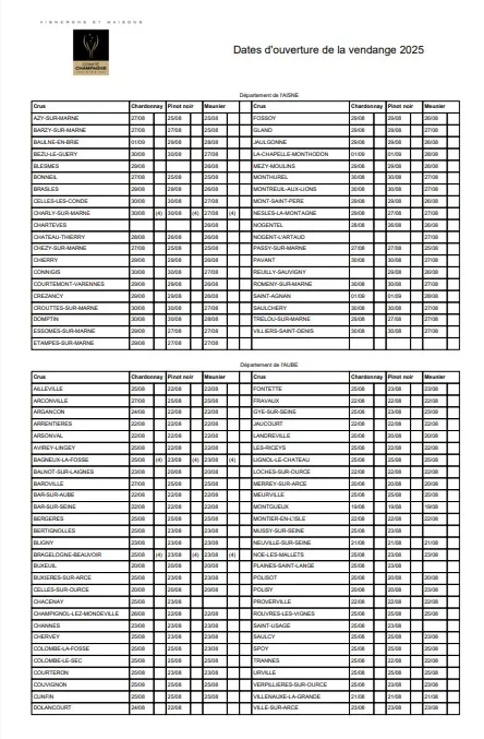 Le C.I.V.C (Comité Interprofessionnel du Vin de Champagne) a dévoilé ce mercredi matin les dates des vendanges en Champagne.