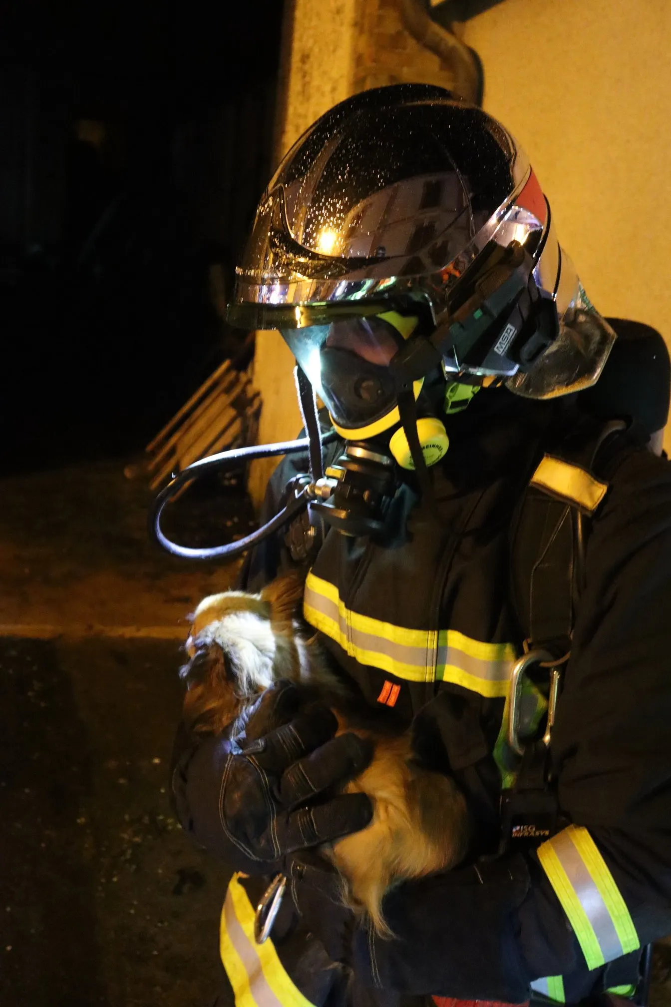 Les pompiers sauvent un chien et sa famille dans un incendie.