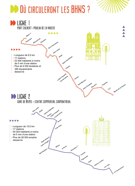 - La première ligne reliera Port Colbert au Moulin de la Housse, reliant ainsi les deux pôles universitaires (Neoma, l’ESAD et la Faculté des Sciences).