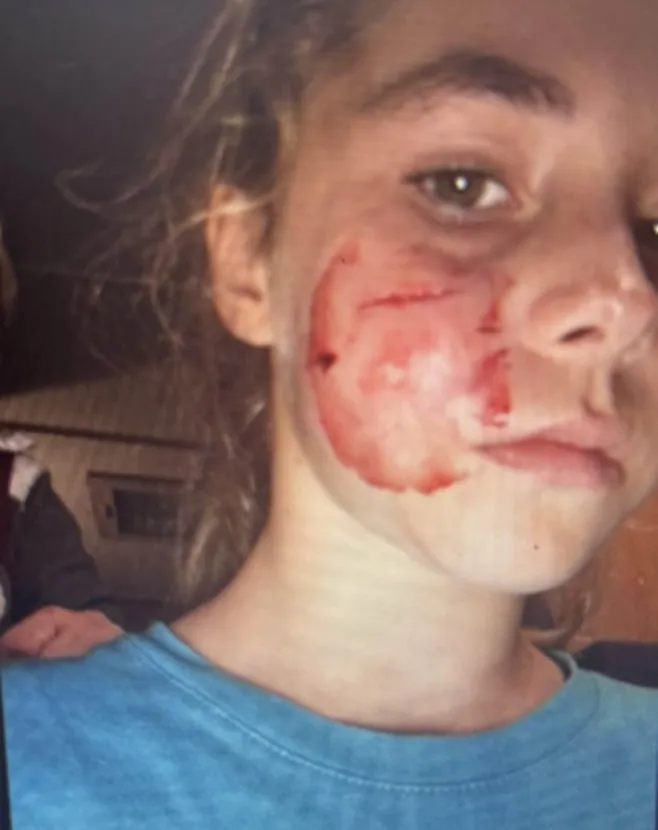 En 2021, elle a été mordue au visage par un chien.