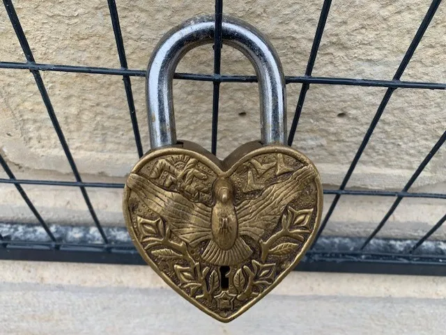 A première vue, sa fonction peut sembler obscure mais plus on s'approche, plus on distingue les cadenas qui y sont accrochés.