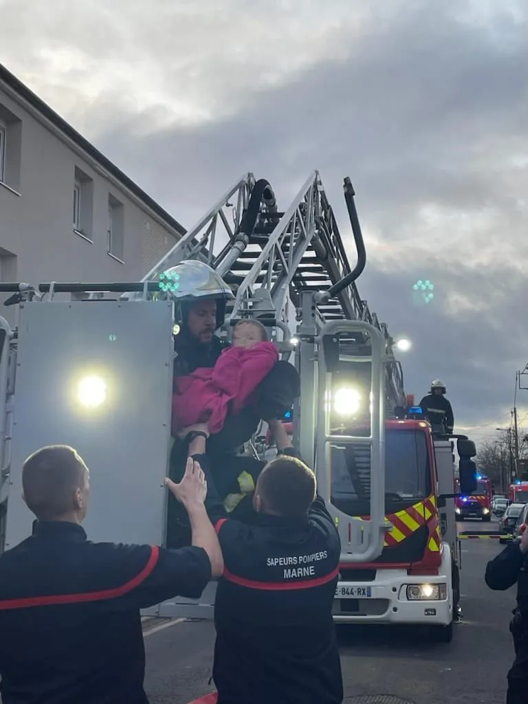 Grace à la grande échelle, les pompiers ont procédé à la mise en sécurité de trois adultes et d’un nourrisson.