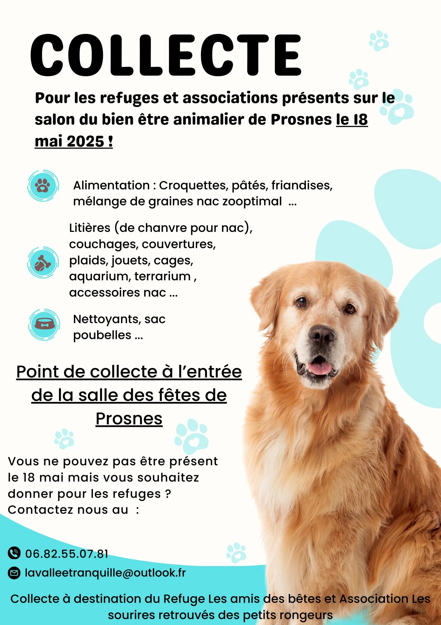 Une collecte de dons (alimentation, jouets, couvertures, produits de soin) sera organisée au profit des refuges présents sur le salon.